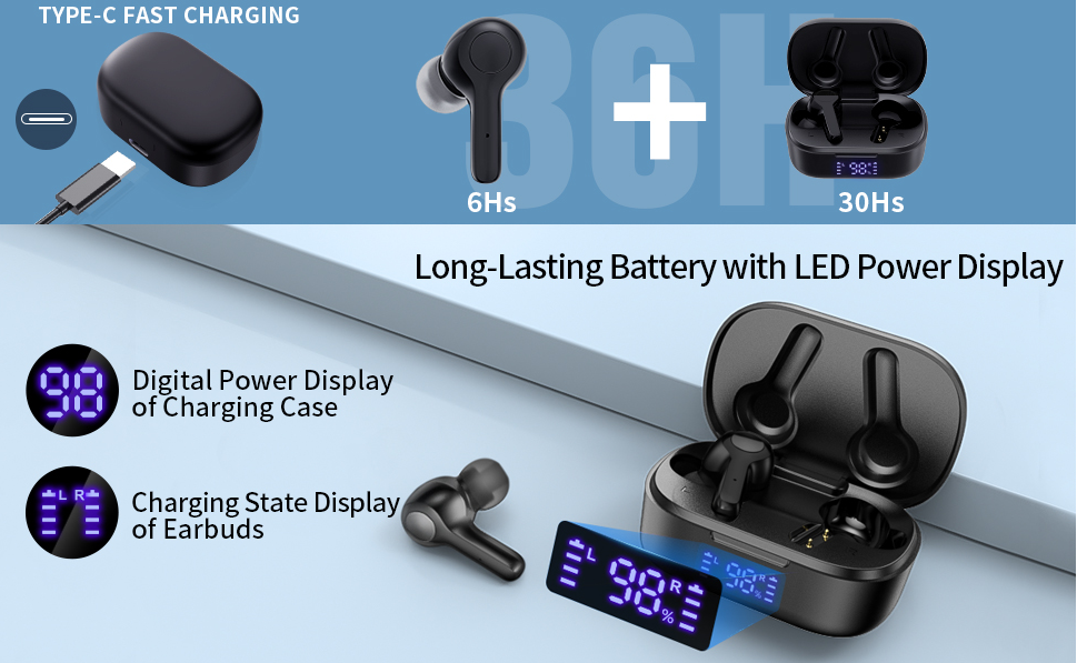 【Ceaseless Drove Power Display】The progressed piece of the Drove screen exhibits the degree of how much the continuous battery has left of the charging case. The splendid Drove progressed screen can check battery usage at any time. Through this show, you can know the power of the earphones reliably you can overwhelm the best an open the door to charge it.